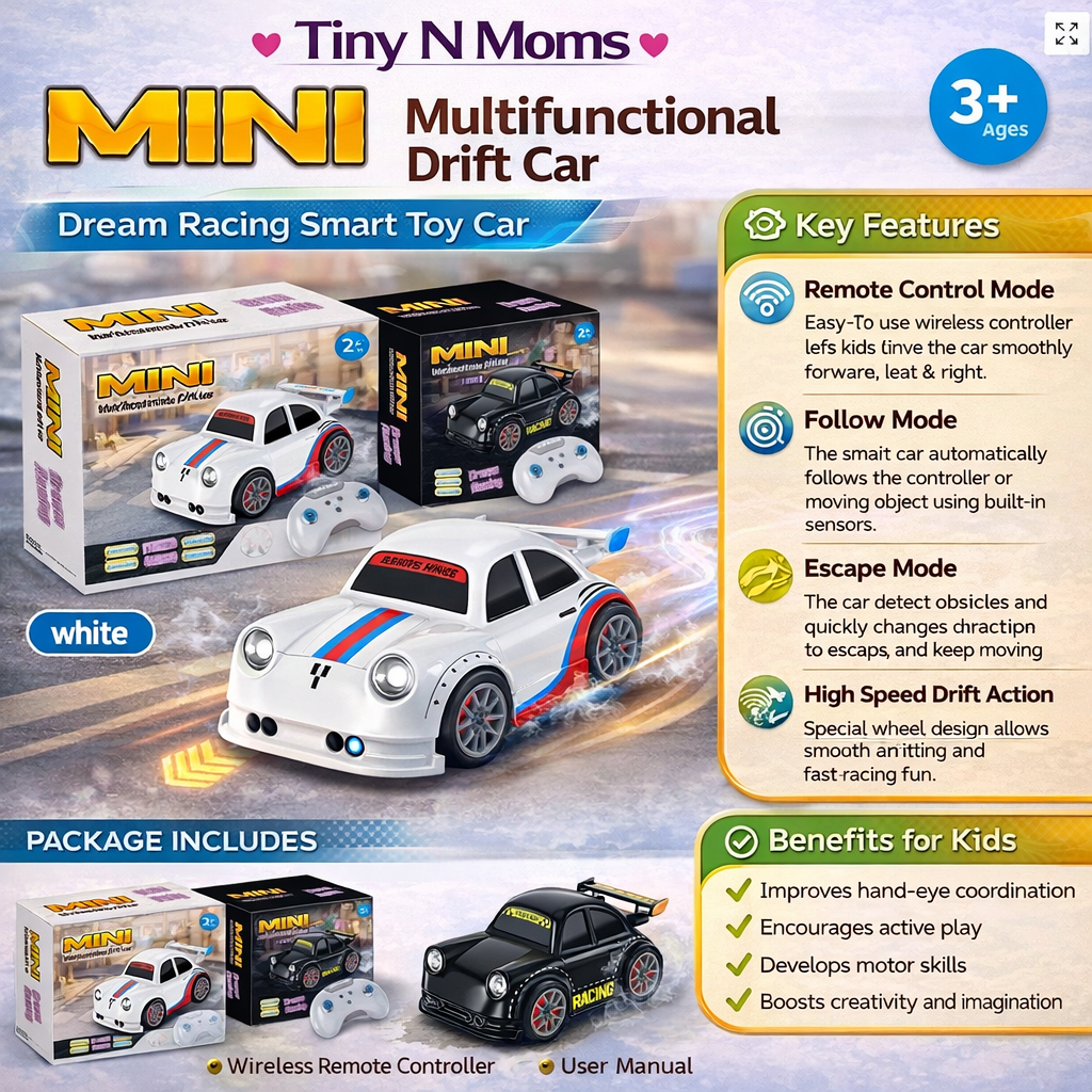 Mini Multi-Functional RC Racing Car for Kids 3+ | Remote Control Toy Car with Follow Mode & Escape Mode | Compact High Speed Dream Racing Car with Controller | Indoor Outdoor Play