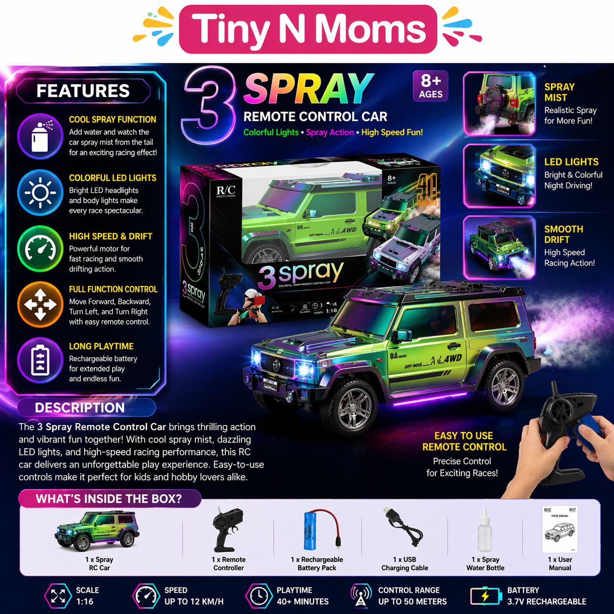 3 SPRAY RC SUV CAR 2.4 GHZ REMOTE CAR WITH LIGHTS AND SMOKE