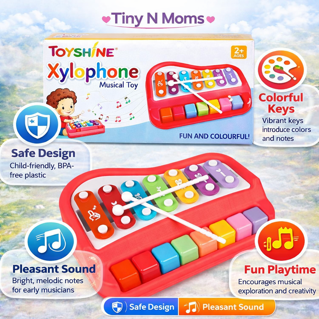 2-in-1 Piano Xylophone for Kids | Multicolor 5 Key Musical Toy with Mallets | Educational Instrument Toy Set for Toddlers, Boys & Girls | Early Learning Sound & Music Playset