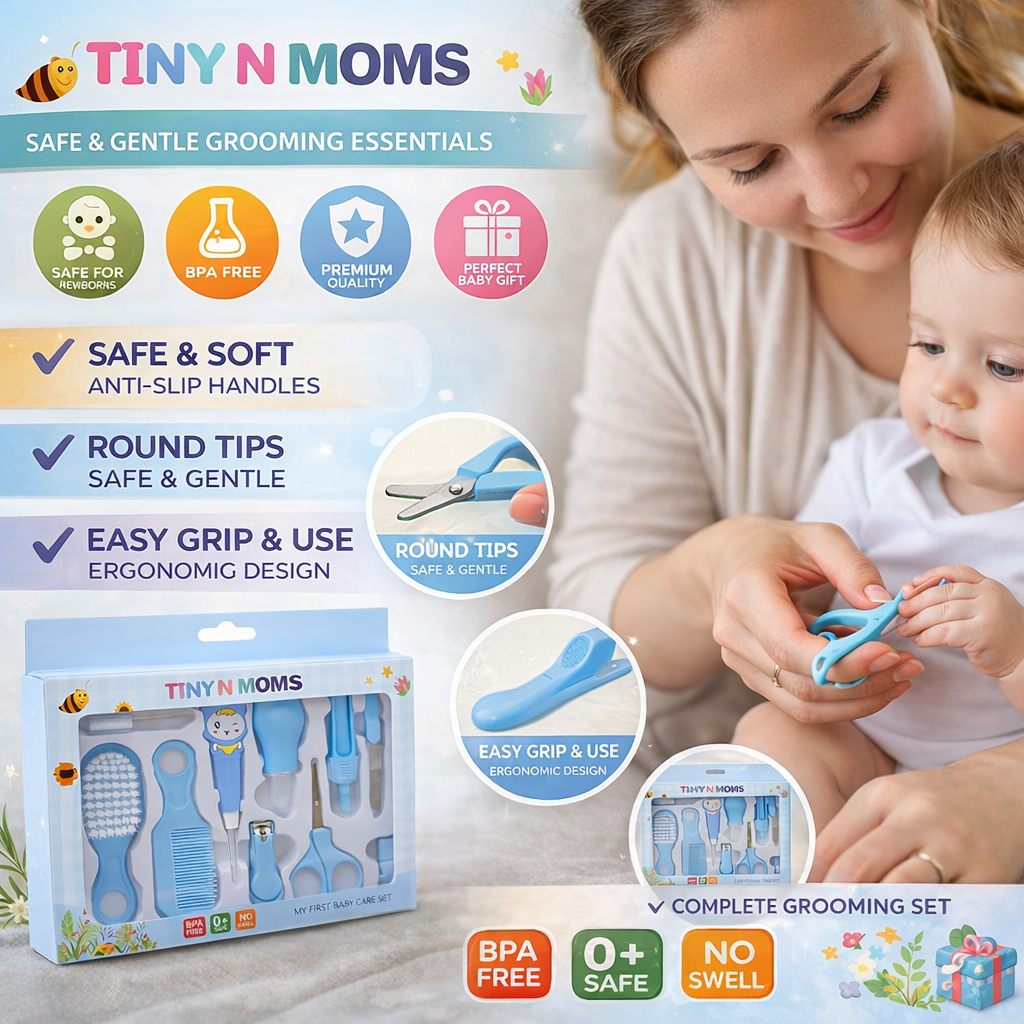 Luxury Manicure Grooming Kit for New Born Baby | 10 in 1 Healthcare Accessories Set to Keep Infants & Toddlers Clean | Perfect Nursery Gift with Hair, Nail, Ear Grooming Tools for Kids (Blue)