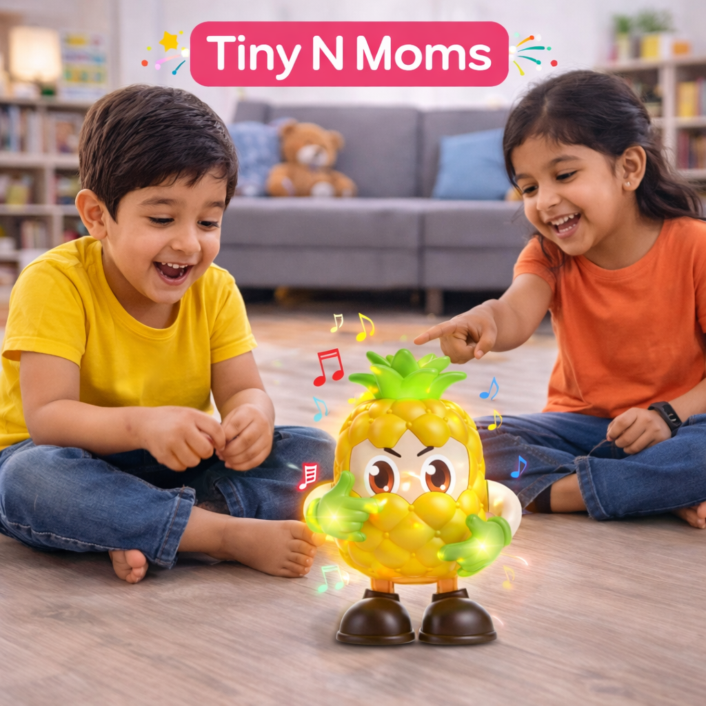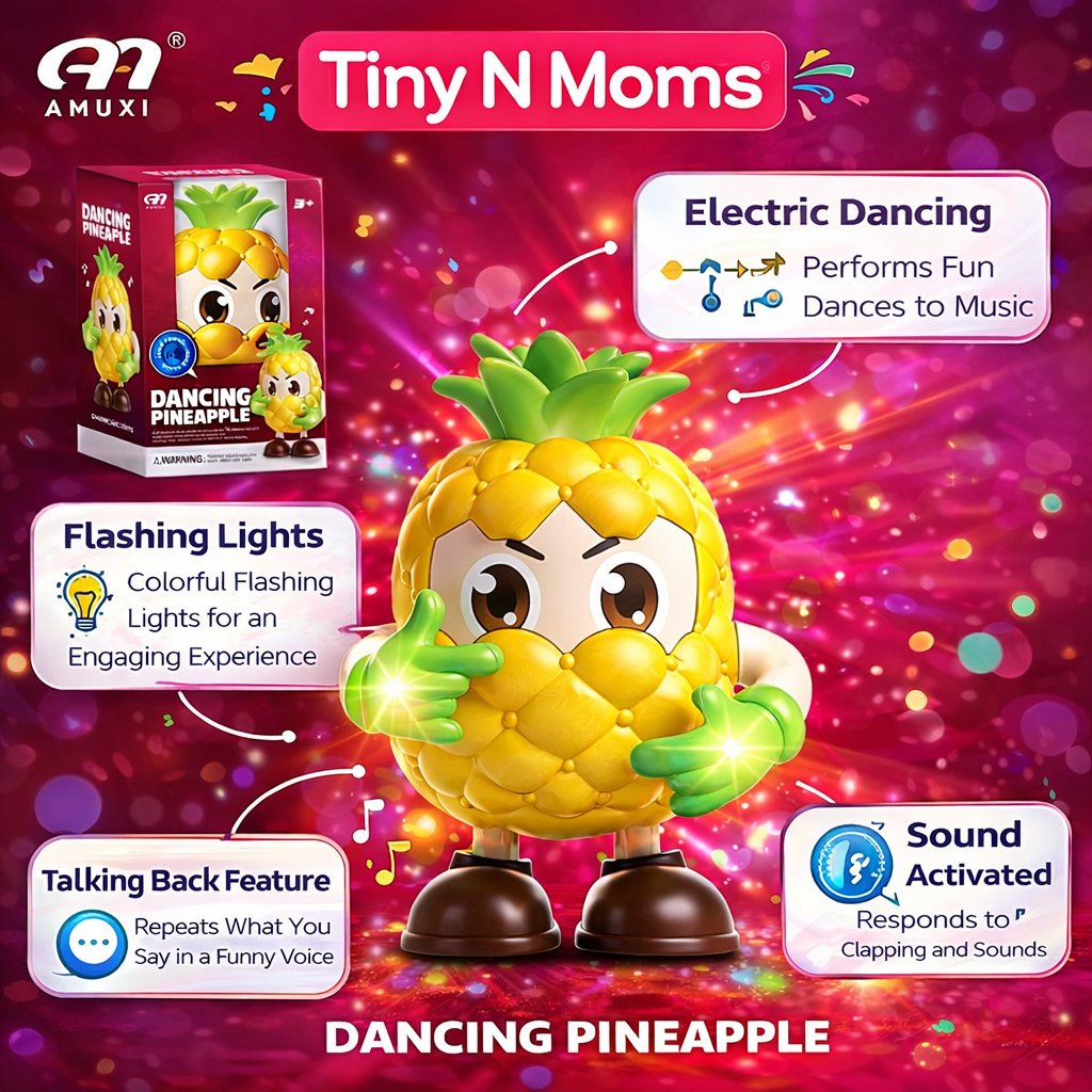 SUPERIOR QUALITY WITH PERMIUM TOUCH Pineapple Robot Fruit Dancing Toy with Light and Music, Electric Swing Action, Voice Repeat Feature, Soft Lighting Effect, Kids Sensory Toy
