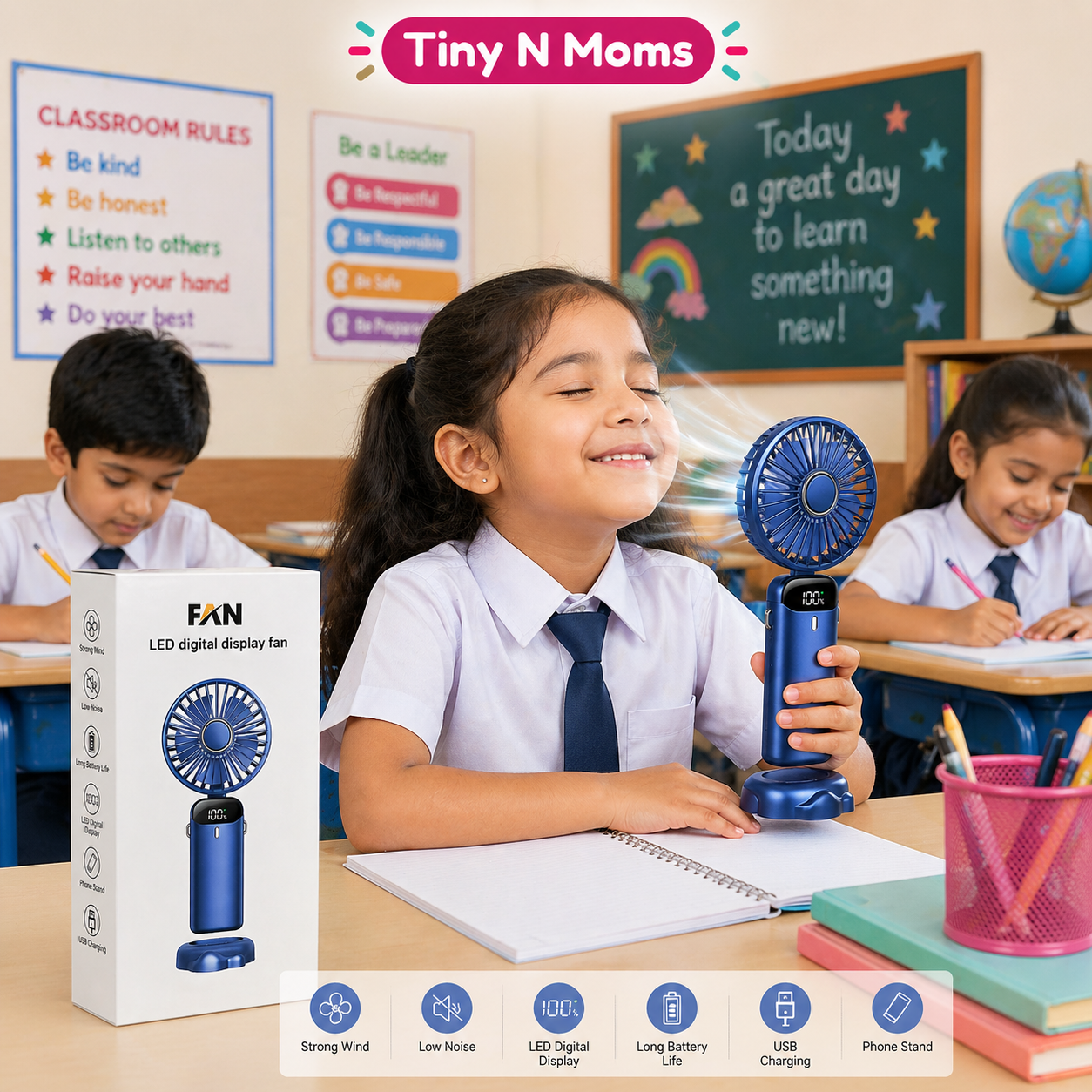 Compact Mini Fan Portable USB Rechargeable Fan High Speed Handheld Table Fan with Stand, Small Personal Cooling Desk Travel Fan for Home Office Outdoor