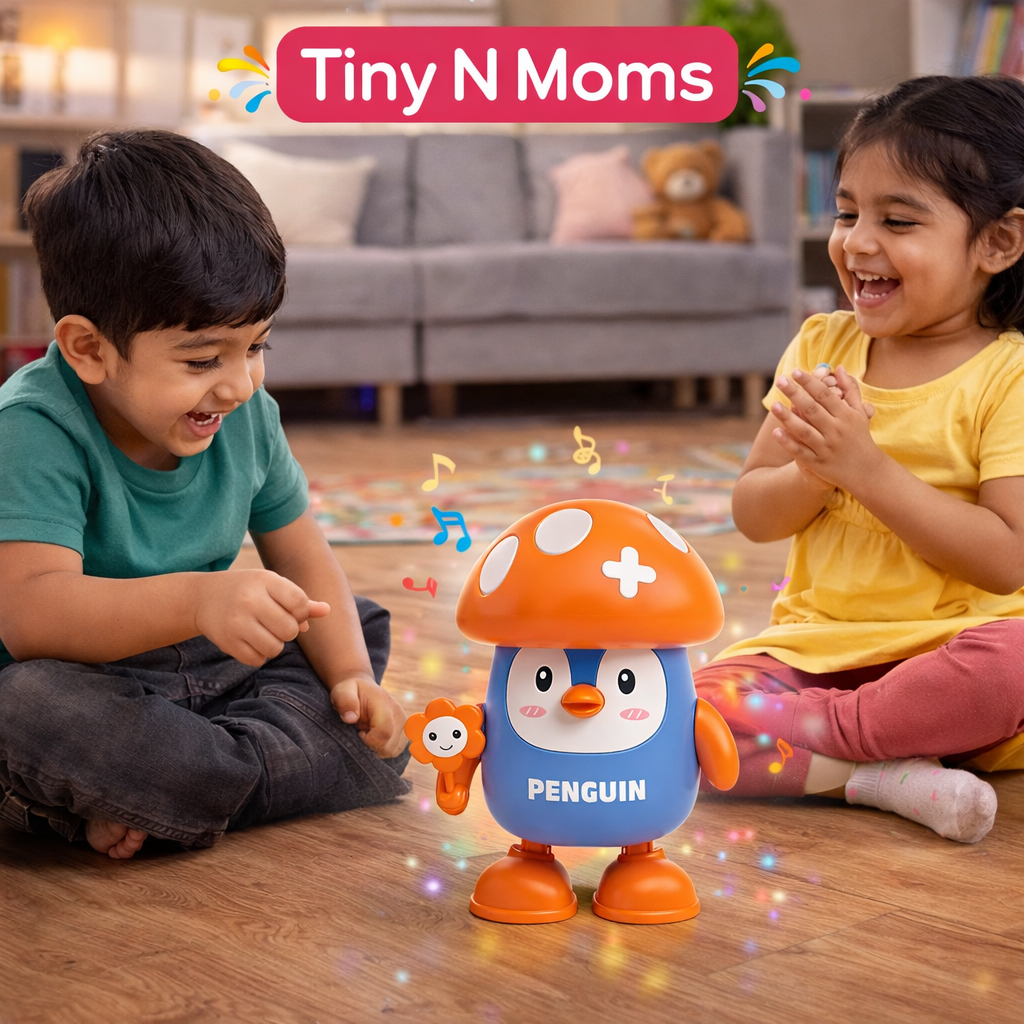 Penguin Musical Dancing Toy with Lights, Interactive Voice Recording Robot, Electric Swing and Dance, Mushroom Cap Design, Kids Sensory Toy, Toys for Babies Boys and Girls