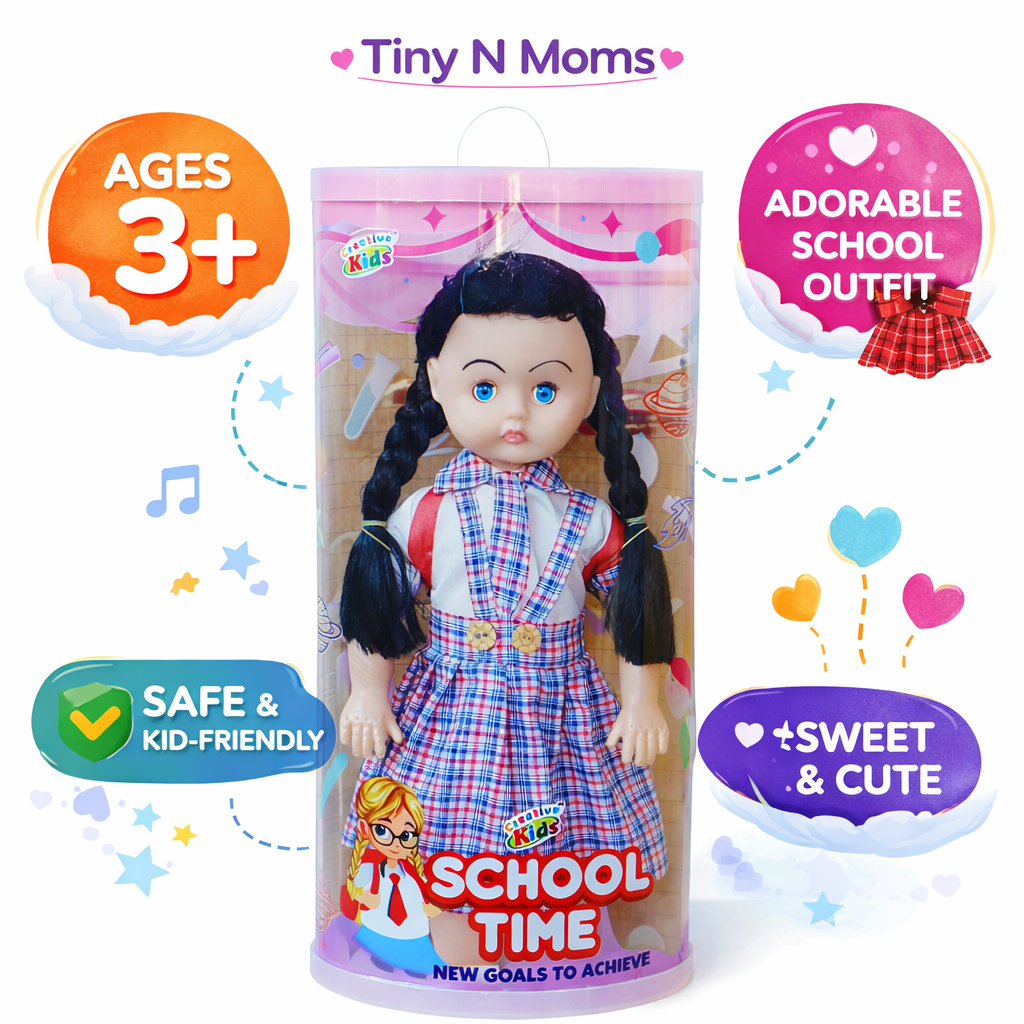 SCHOOL TIME DOLL Blinking Eyes – Realistic Features, Trendy Outfits, Collectible Toy for Girls, for Kids, Fun and Interactive Doll for Imaginative Play and Display