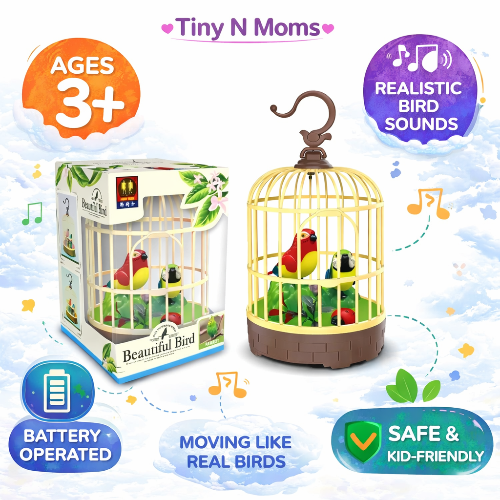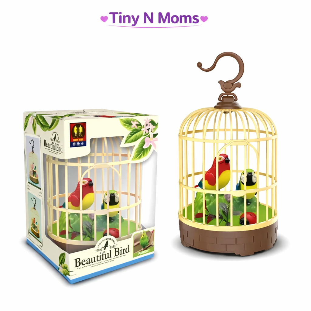 Singing Moving Chirping Beautiful Bird Pet Toy in Cage, Hanging Cage with Music Singing Moving Chirping for Kids for Home Decor/Living Room/Garden (Multicolour)