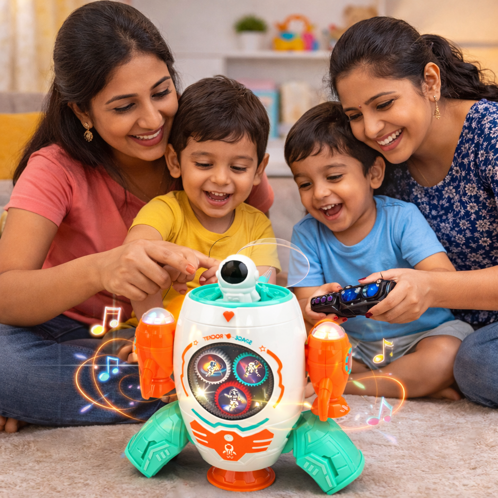 Plastic Musical Space Rocket Toy for Kids, Battery Operated Dancing Electric Walking Toy, 360 Degree Rotating Space Ship with Lights, Assorted, 3+ Years (Pack of 1)