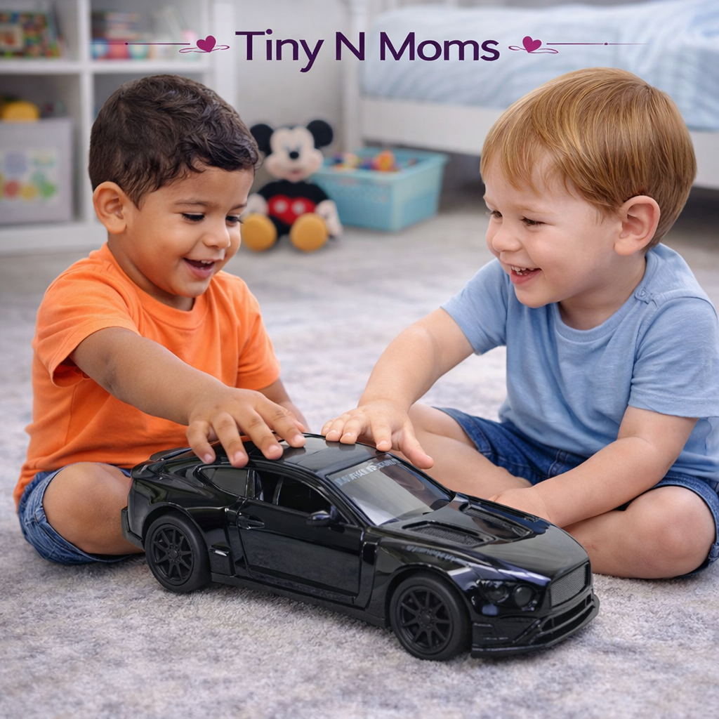 Die Cast Metal Toy Car 1:32 Scale with Opening Doors & Pull Back Action for Kids Boys Girls (Black)