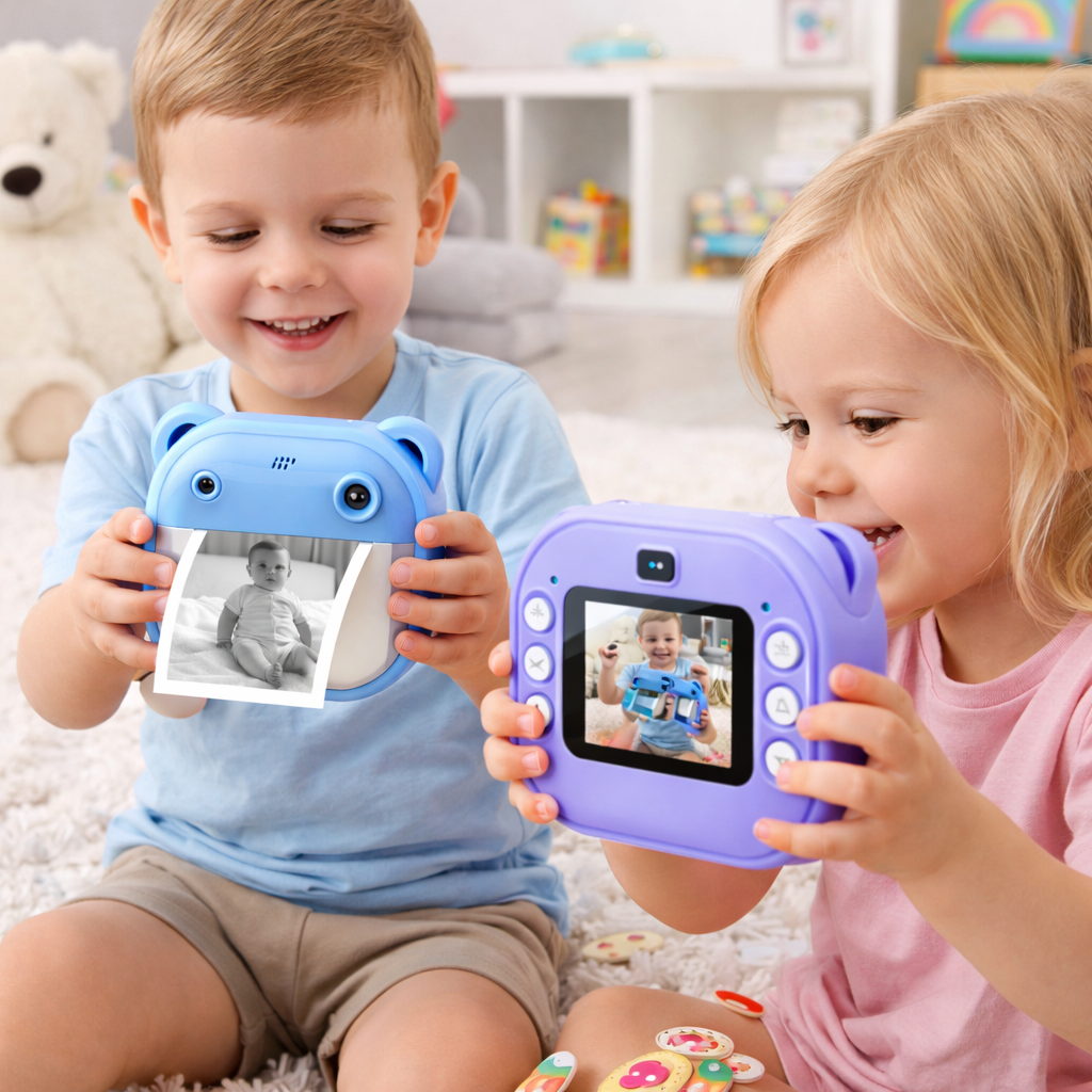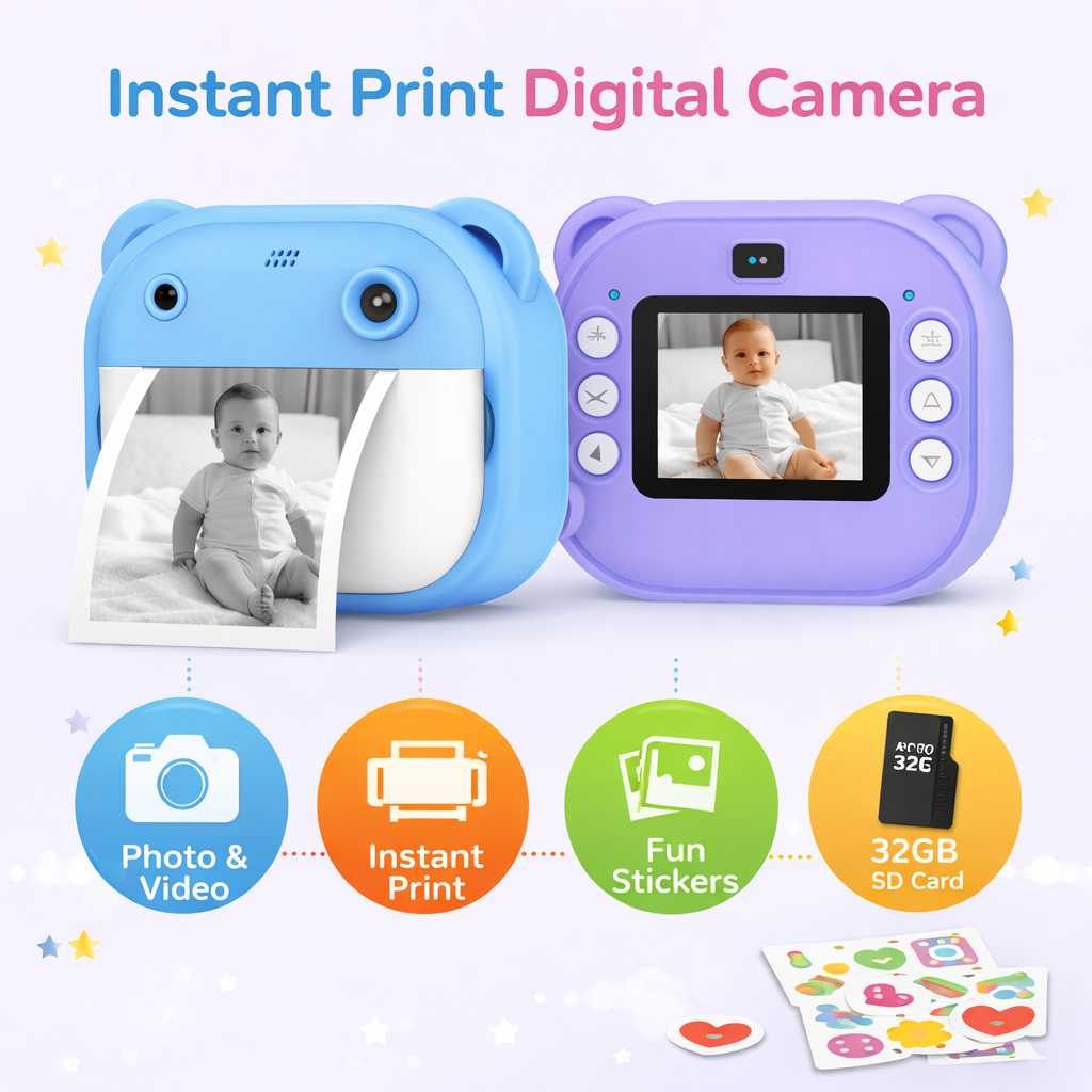 Kids Instant Print Camera with 4 Games – 3-in-1 Digital Camera for Boys & Girls Ages 3-12 | Print Photos & Record Videos | Supports 64GB SD, Gift-Ready – 2 Rolls (Teddy)