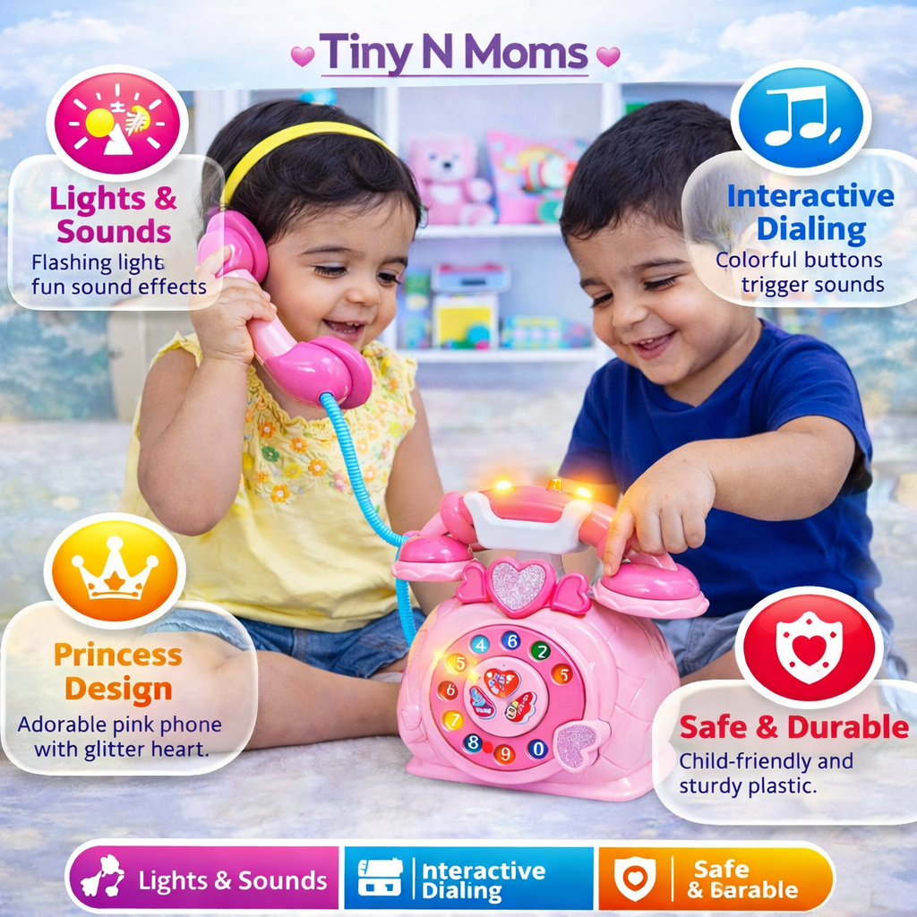 Classic Dial Receiver Simulation Telephone Toy for Kids – Rotating Number Dial with Calling Sound Effect – Storytelling Toy Phone Accompanied with Lights – Color As Per Stock