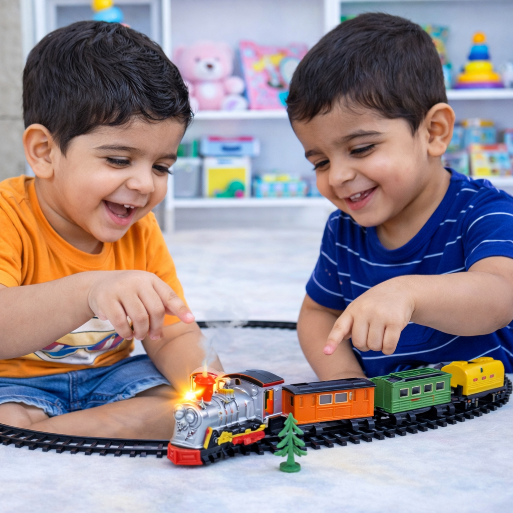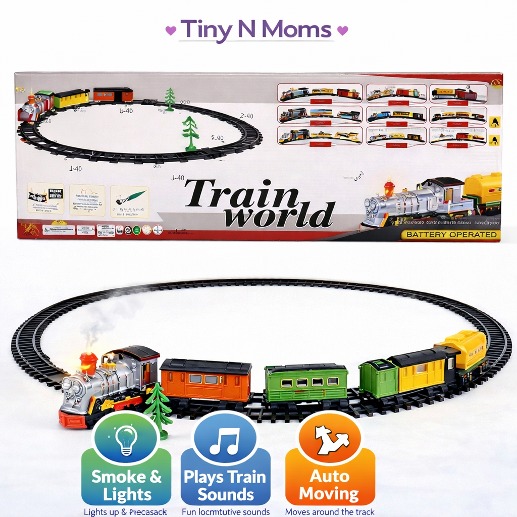Train World Classic Electric Toy Train Set – 27 Pcs Battery Powered Railway Playset with Lights & Track – Ideal Gift for Boys & Girls